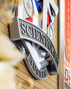 La próxima Iglesia Ideal de Scientology en Texas se encuentra adyacente a la Universidad de Texas. El edificio de más de 4800 metros cuadrados está en la calle social principal de Austin, famosamente conocida como The Drag, donde 70 000 peatones pasan cada día.